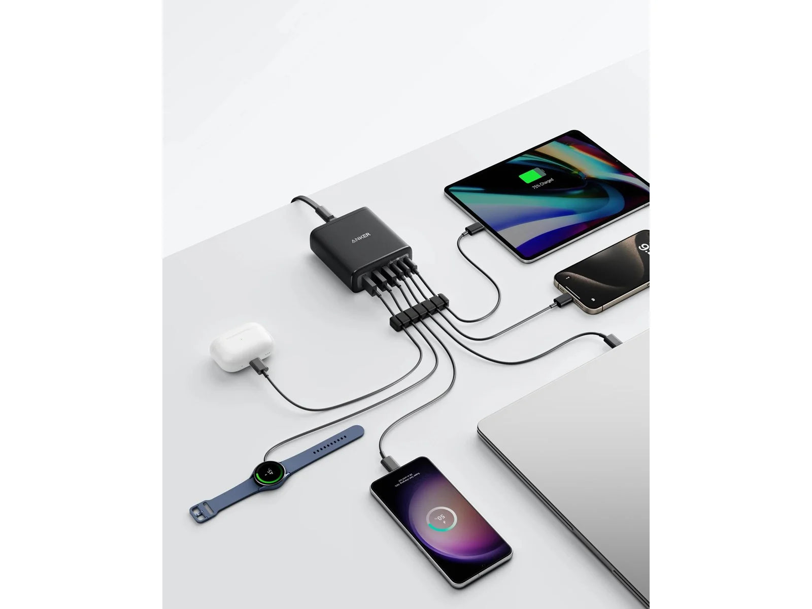 Anker Ładowarka GaN to niezawodne centrum zasilania dla wszystkich Twoich urządzeń. Z 6 portami (3x USB-A, 3x USB-C) i mocą 112W, naładujesz smartfony, tablety i laptopy jednocześnie. Kompaktowa technologia GaN sprawia, że jest idealna w podróży, a uniwersalna kompatybilność zapewnia wygodę użytkowania.