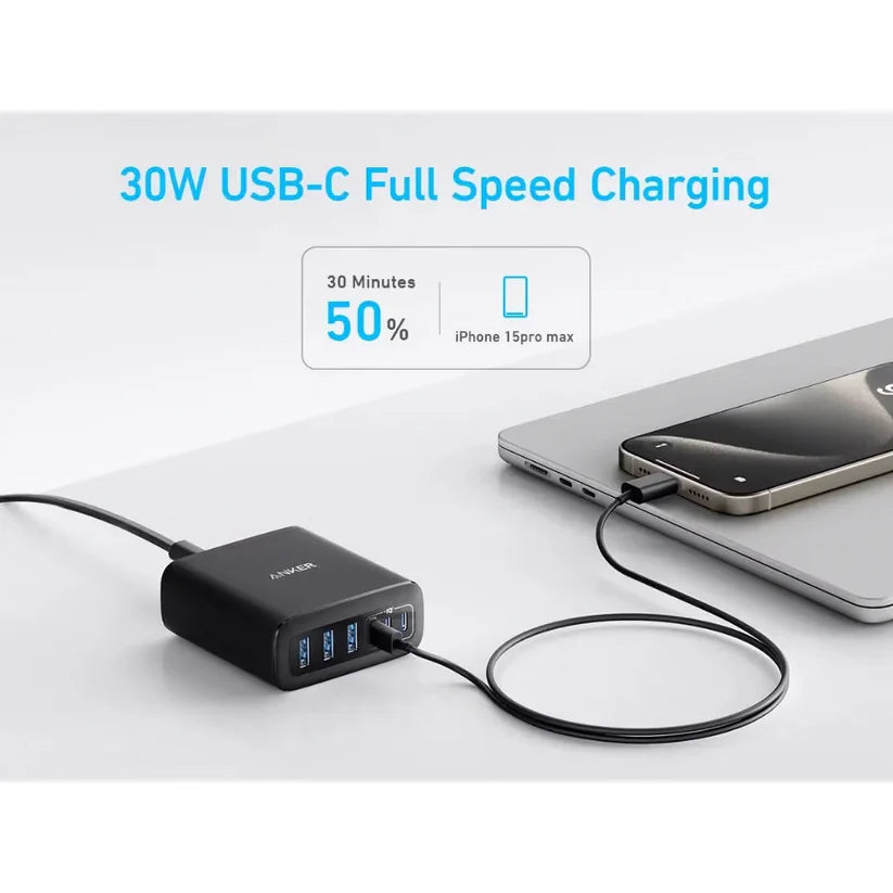 Anker Ładowarka GaN, 3xUSB-A 3xUSB-C, 112W, Czarna