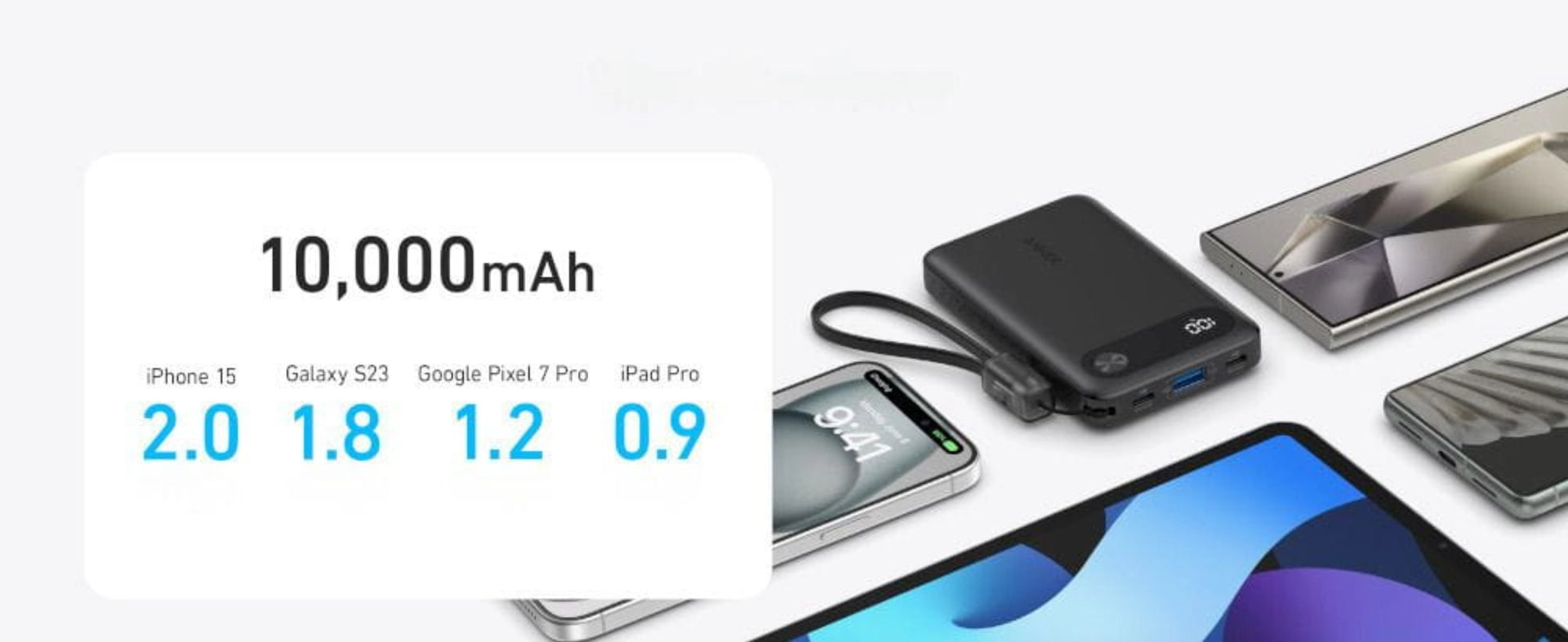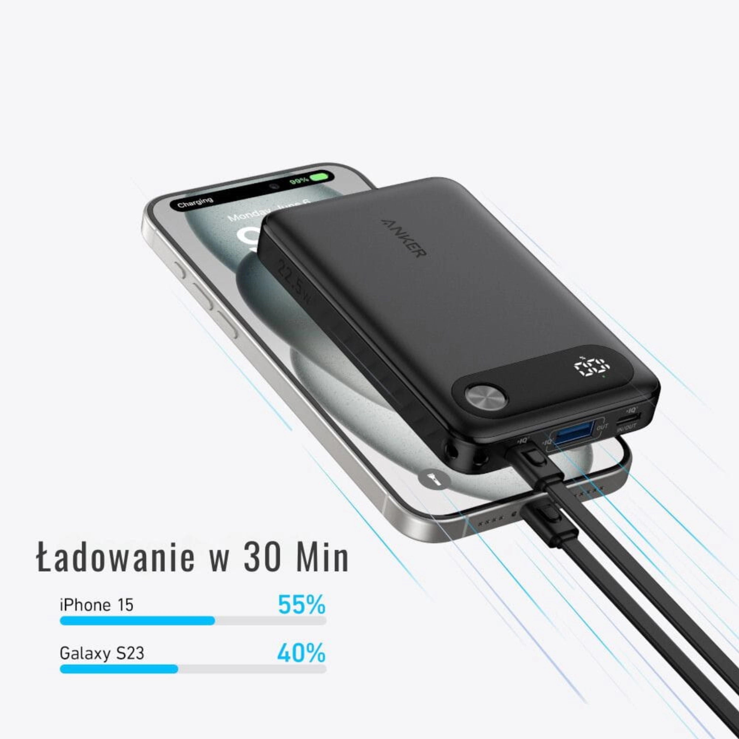 Anker Powerbank Powercore 10000mAh 22.5W to kompaktowe i wydajne źródło energii, idealne dla każdego, kto ceni sobie mobilność i niezawodność. Ten elegancki powerbank łączy w sobie dużą pojemność z szybkim ładowaniem Power Delivery, zapewniając, że Twoje urządzenia zawsze będą gotowe do działania. Dzięki kompaktowym wymiarom i wbudowanemu kablowi USB-C, jest idealnym towarzyszem w podróży i na co dzień.