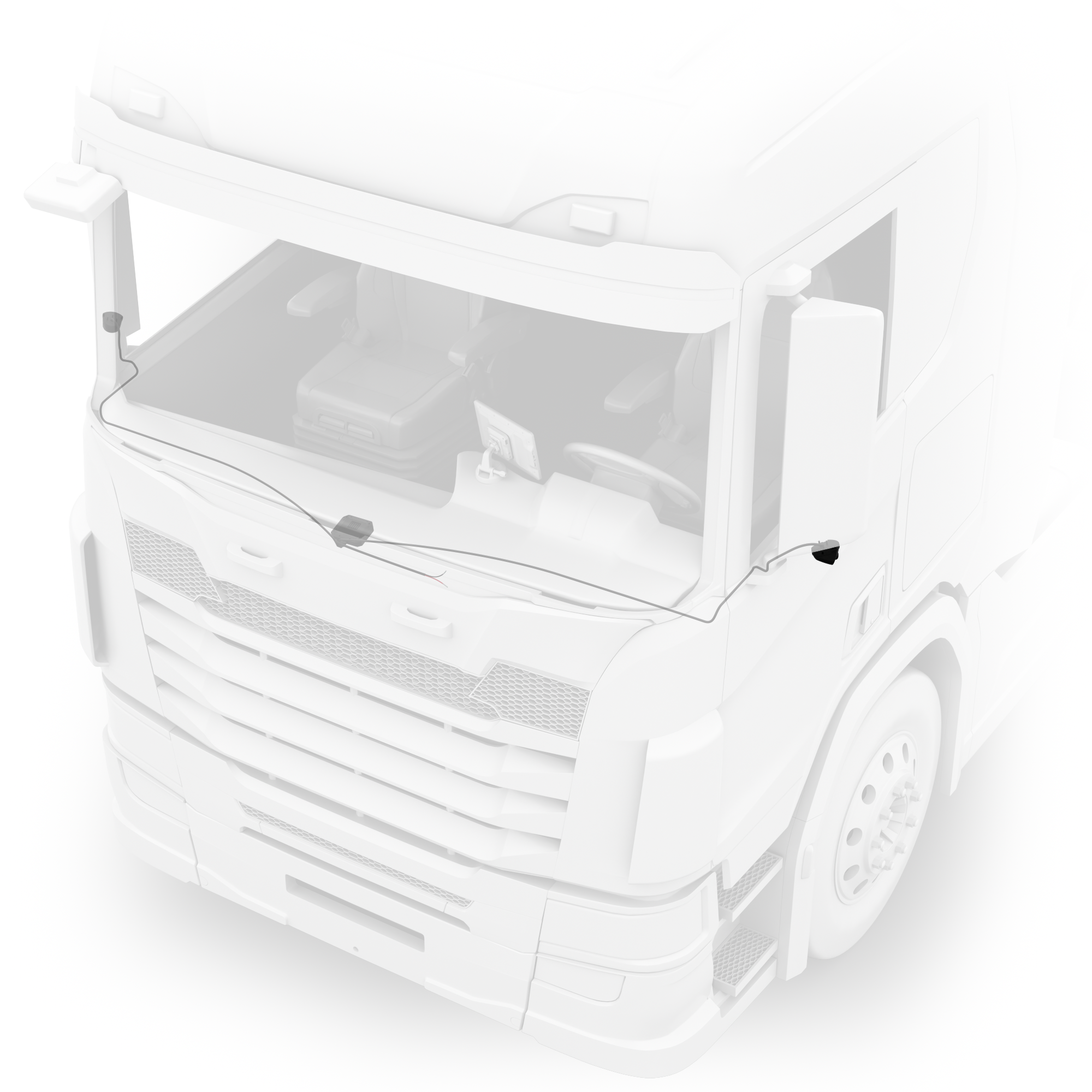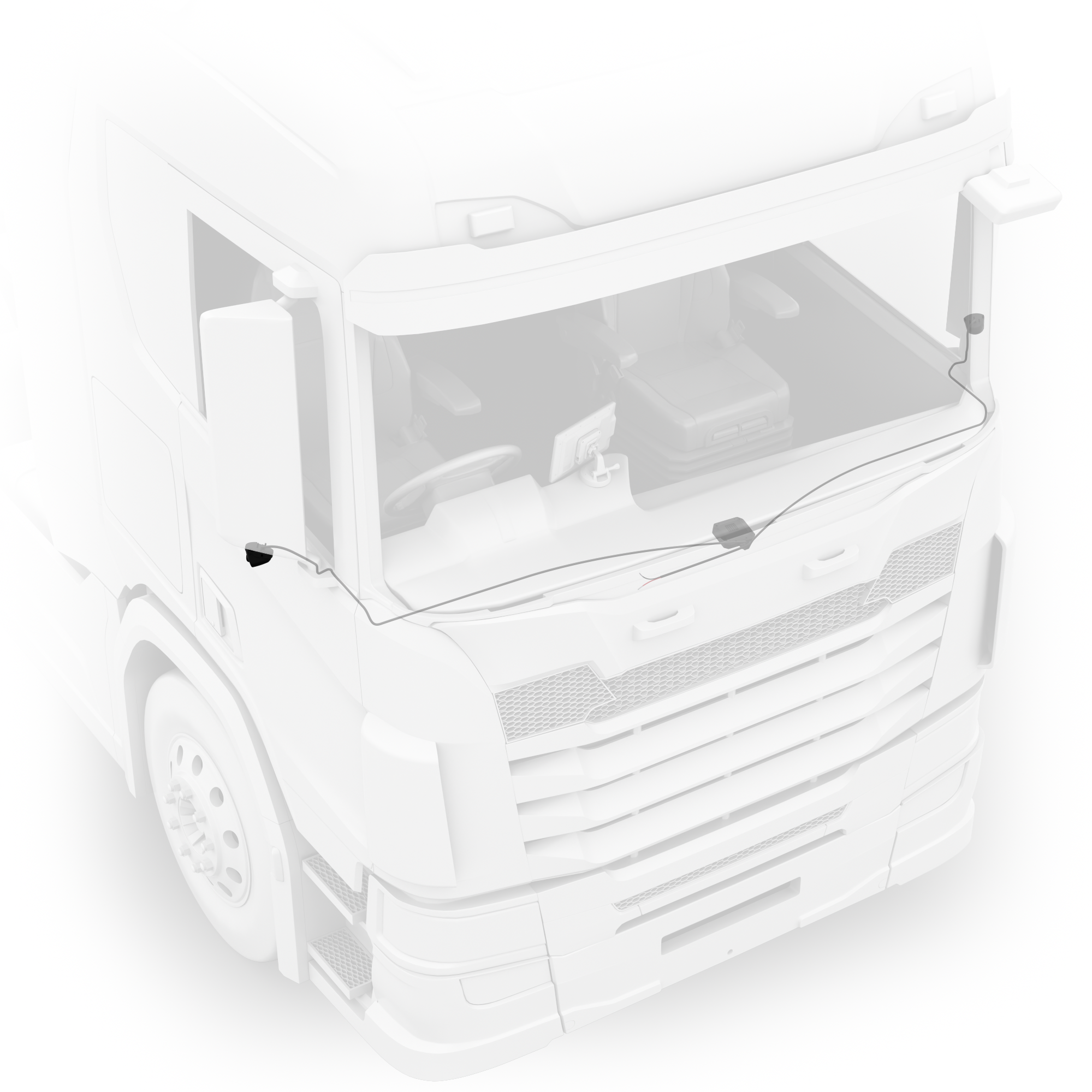 - System dwóch kamer – jednoczesny podgląd obu boków ciężarówki.