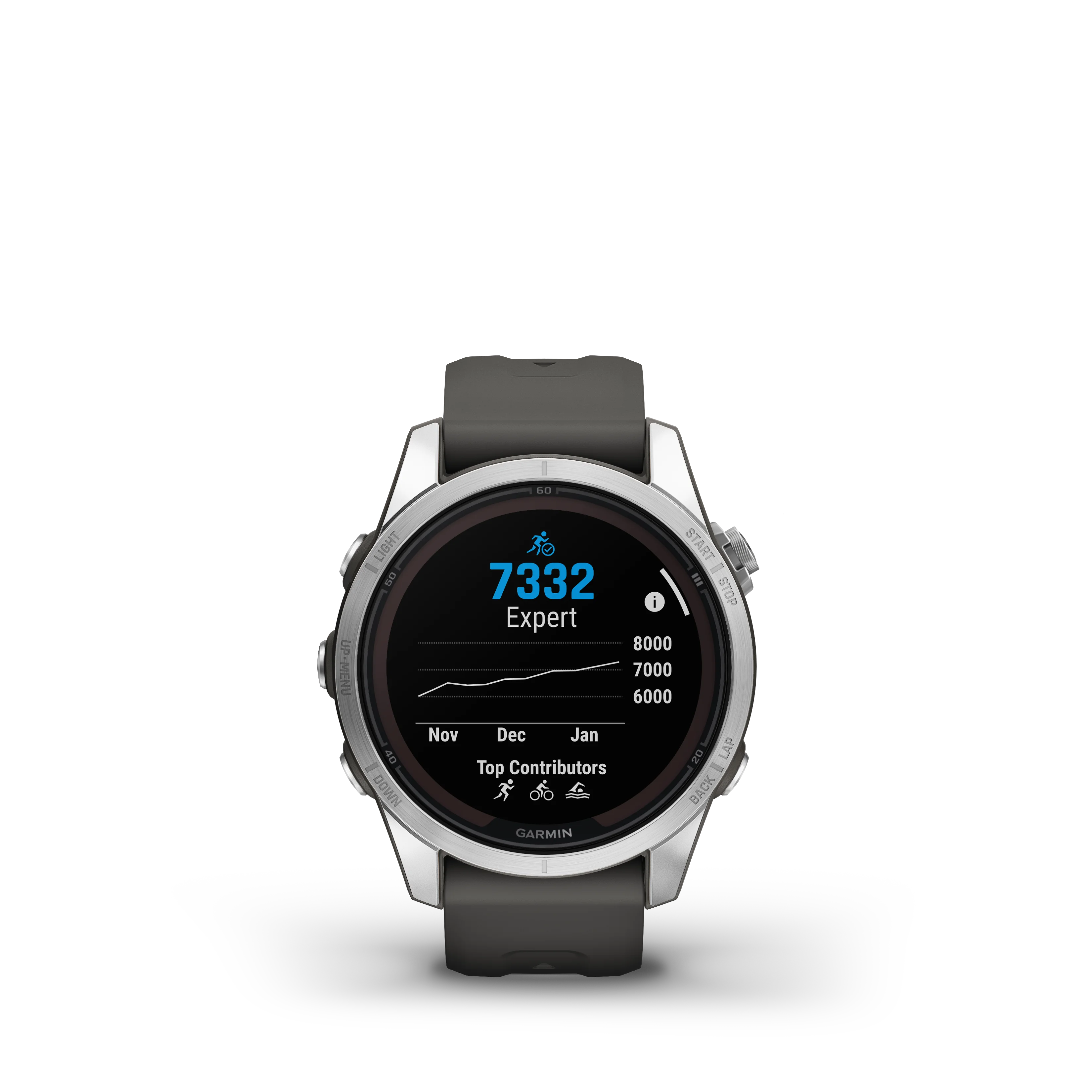 Wykorzystaj w pełni każdą godzinę dzięki zaawansowanym funkcjom treningowym i całodobowemu monitorowaniu zdrowia i samopoczucia, a wszystko to z baterią działającą nawet ponad miesiąc dzięki soczewce solarnej Power Glass™ i wytrzymałej kopercie zegarka zaprojektowanej z myślą o mniejszych nadgarstkach.