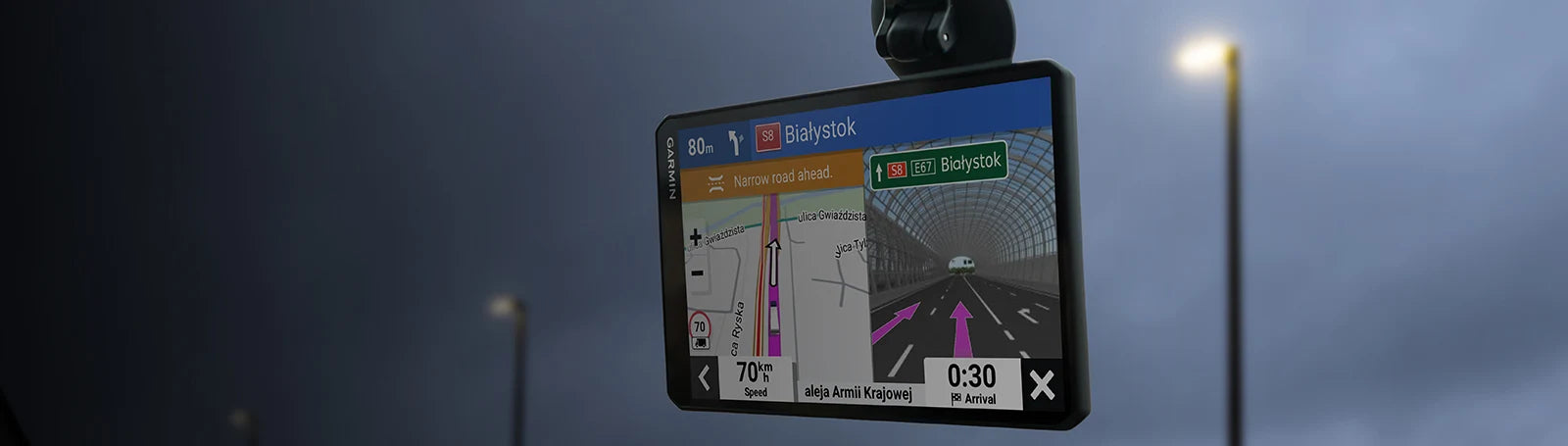 To 7-calowe urządzenie nawigacyjne posiada wbudowaną kamerę samochodową do rejestrowania sytuacji na drodze, a także oferuje wyznaczanie spersonalizowanych tras uwzględniających rozmiar i masę pojazdu ciężarowego. Dodatkowo, wyposażone jest w zaawansowaną funkcję planowania czasu przybycia, co ułatwia precyzyjne zarządzanie podróżą.