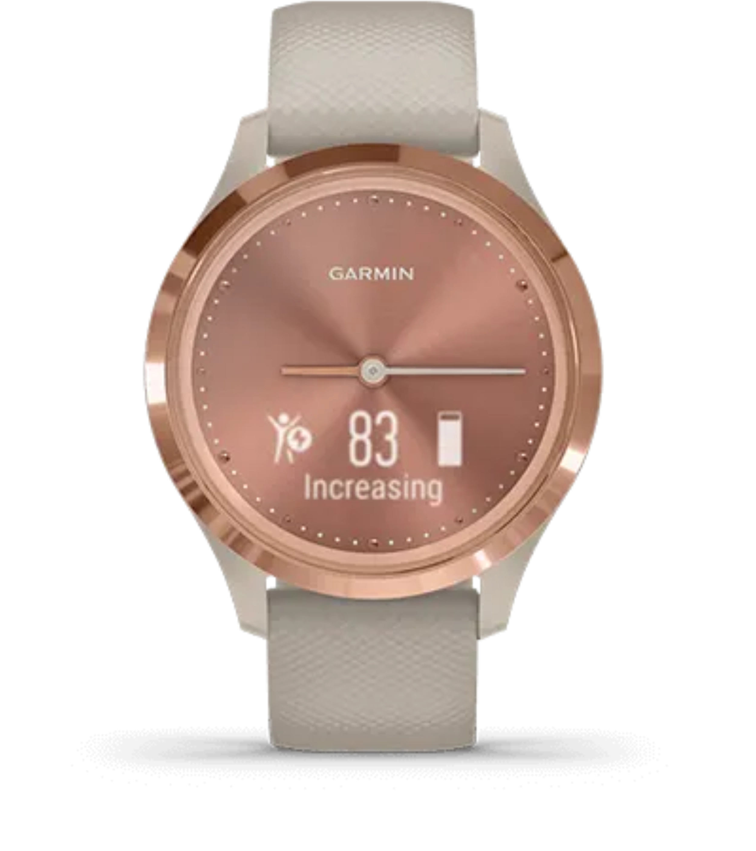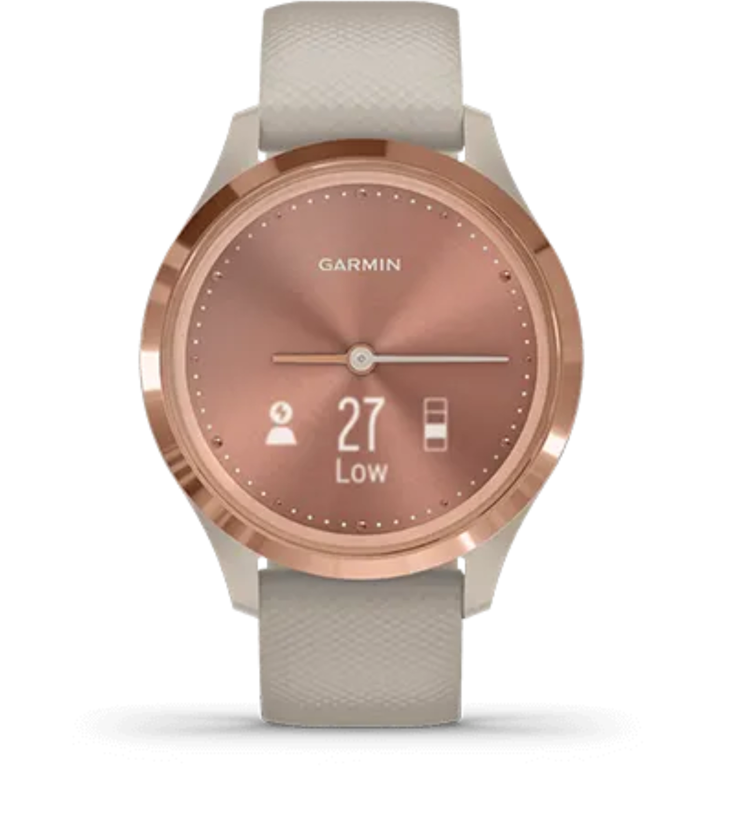 Garmin vívomove® 3S to wyjątkowy zegarek hybrydowy, który łączy elegancki, tradycyjny wygląd z najnowocześniejszymi funkcjami smart. Dyskretny, ukryty ekran dotykowy pozwala cieszyć się klasycznym stylem, a jednocześnie zapewnia dostęp do powiadomień, monitorowania zdrowia i narzędzi fitness. Dzięki wytrzymałej konstrukcji i wszechstronności sprawdzi się zarówno podczas codziennych obowiązków, jak i aktywnego trybu życia. To idealny wybór dla osób, które cenią styl, wygodę i pełną kontrolę nad swoją aktywnością.