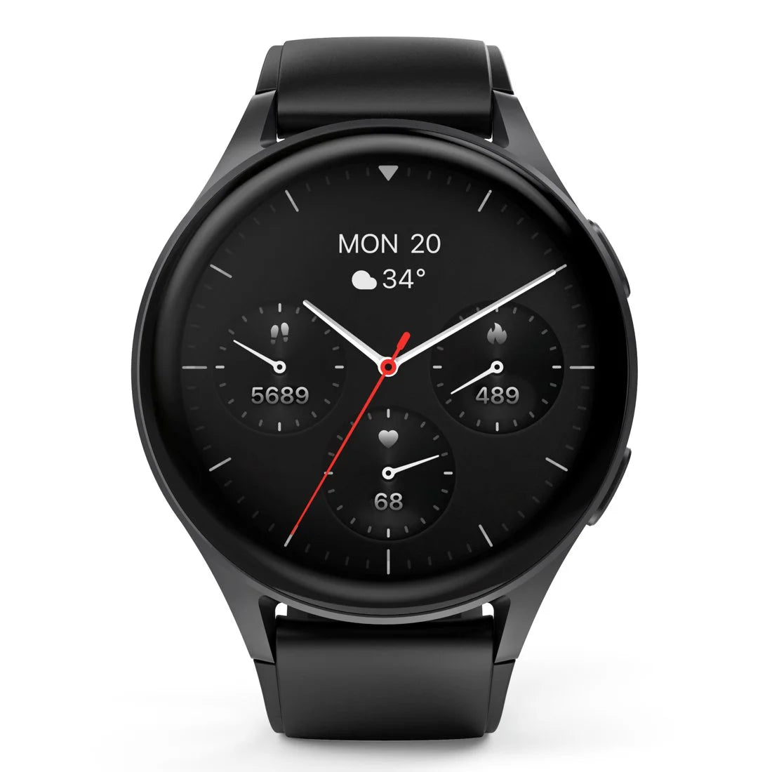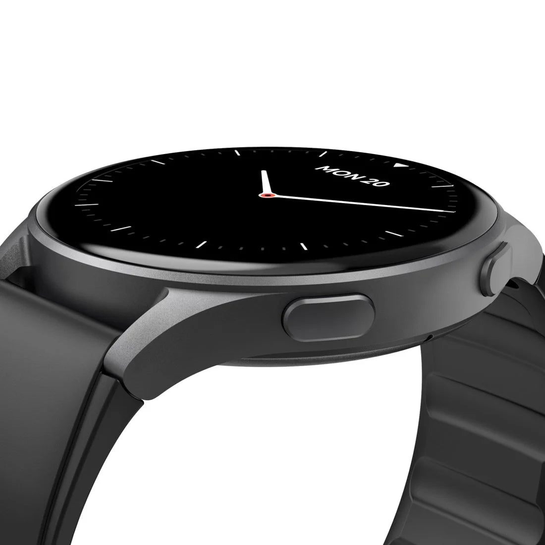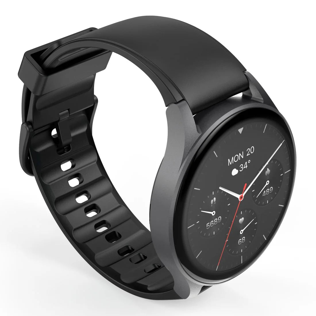 Smartwatch męski Hama 8900, GPS, AMOLED 1.43, czarna koperta, czarna ramka, pasek silikonowy.