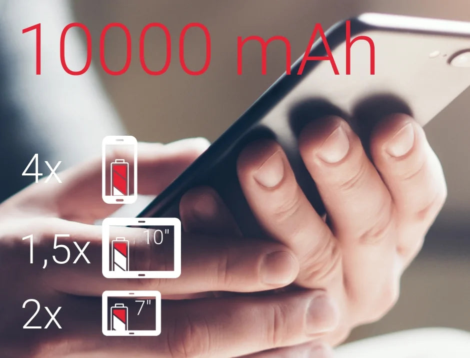 Wysokiej jakości bank energiI o lekkiej i zarazem wytrzymałej konstrukcji zapewniający użytkownikom do 65 godzin dodatkowej pracy urządzenia mobilnego: smartfona lub tabletu.