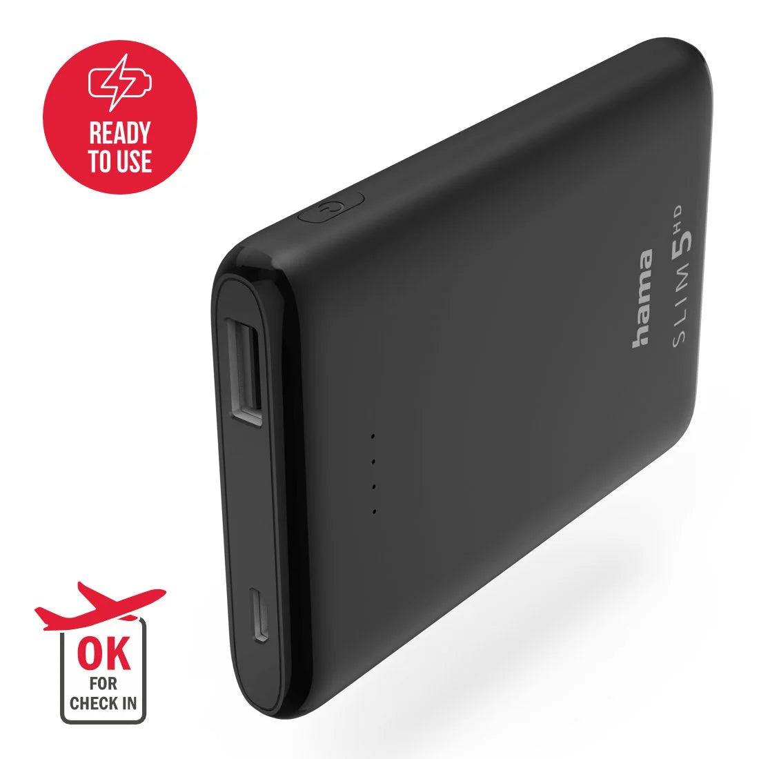 Hama powerbank SLIM 5HD, 5000mAh, czarny