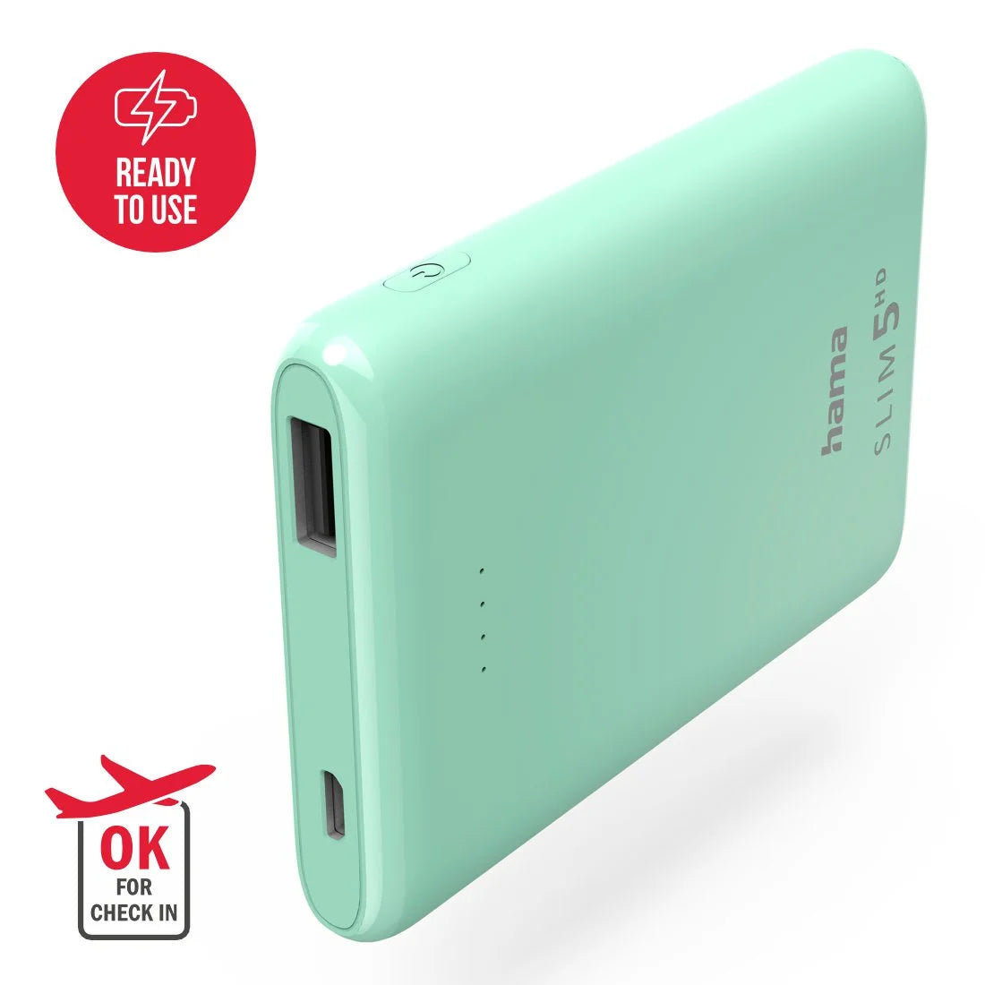 Hama powerbank SLIM 5HD, 5000mAh, zielony