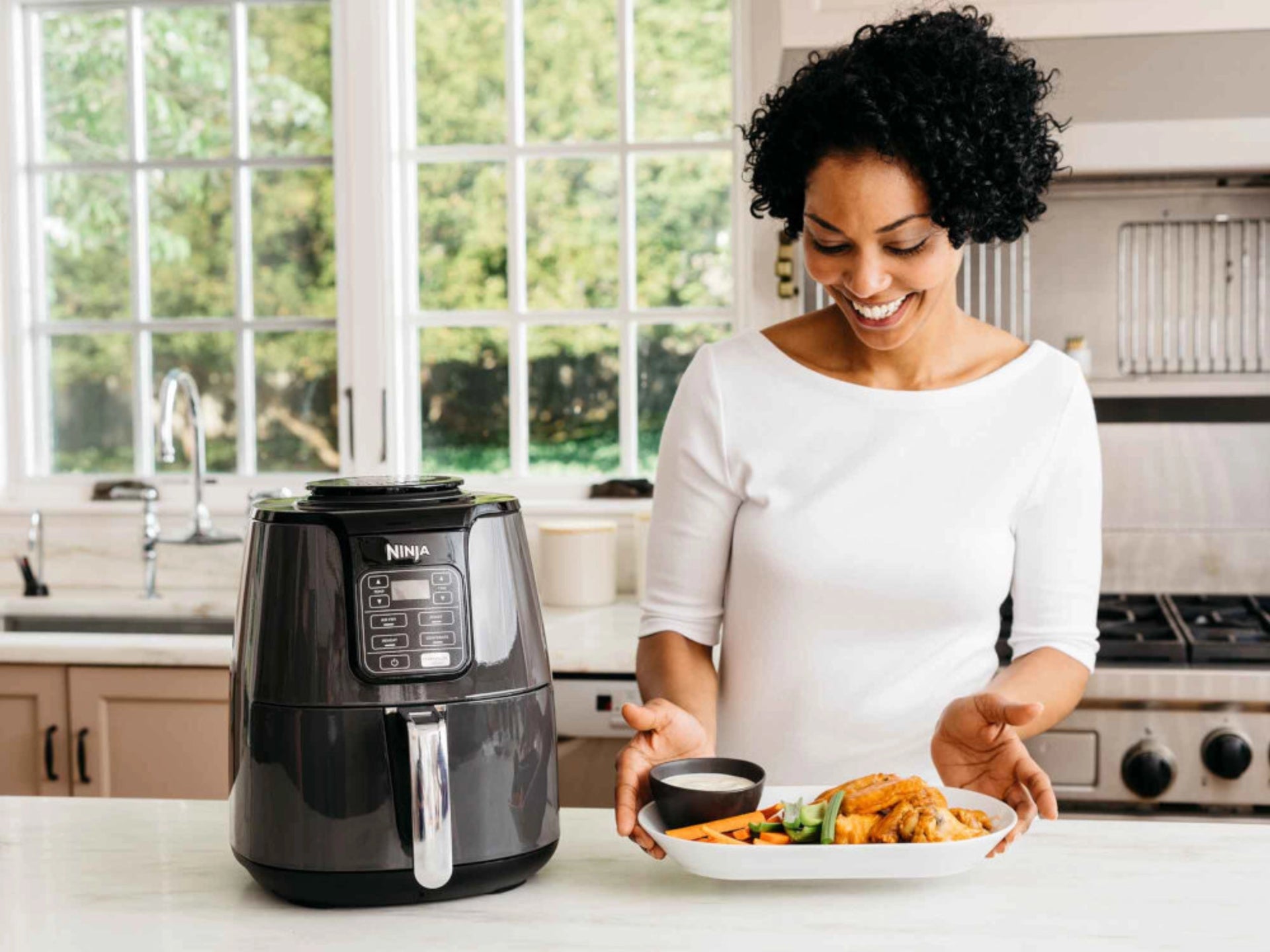 Frytkownica beztłuszczowa Ninja AF100EU to doskonałe rozwiązanie dla osób pragnących zdrowiej się odżywiać, nie rezygnując z ulubionych smaków. Dzięki technologii gorącego powietrza pozwala osiągnąć efekt chrupiącego smażenia bez użycia oleju lub z jego minimalną ilością, co czyni ją idealnym wyborem dla osób na diecie niskokalorycznej czy dbających o zdrowy styl życia.