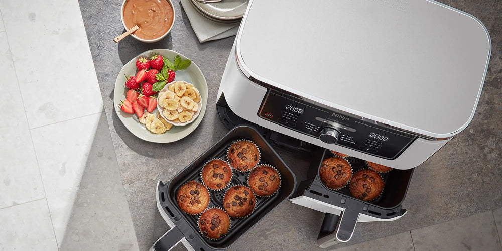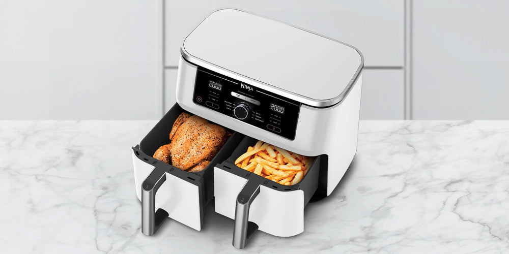 Jej główny atut to możliwość przygotowania dwóch różnych dań jednocześnie. Wyposażona jest w dwa oddzielne kosze mogące pracować w osobnych trybach. To jednak nie koniec zalet. Oba kosze mają łączną pojemność aż 9,5 l. Brzmi nieźle? Poznaj bliżej to wyjątkowe urządzenie.