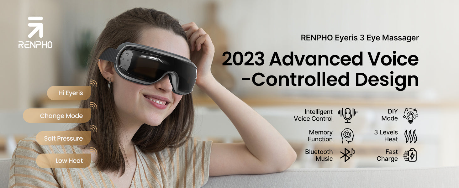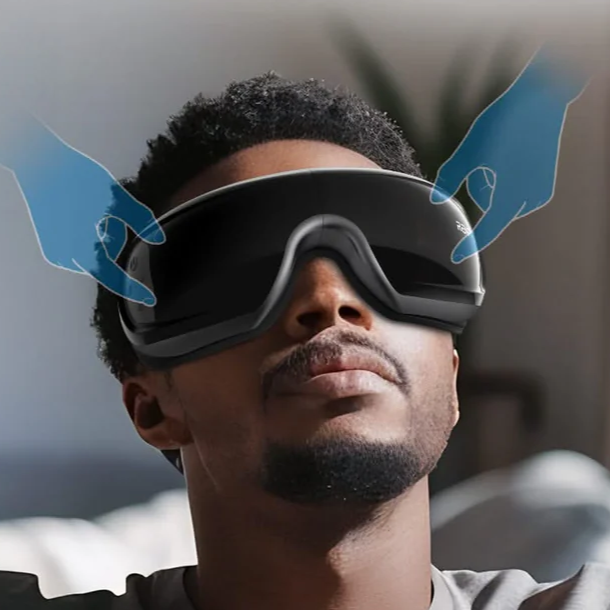 Renpho Edge Eyeris 3 czarny - Inteligentny masażer oczu ze sterowaniem głosowym i maską żelową
