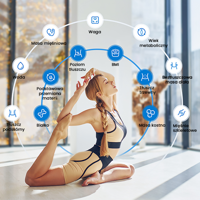 • 13 wskaźników składu ciała – pełna analiza zdrowia