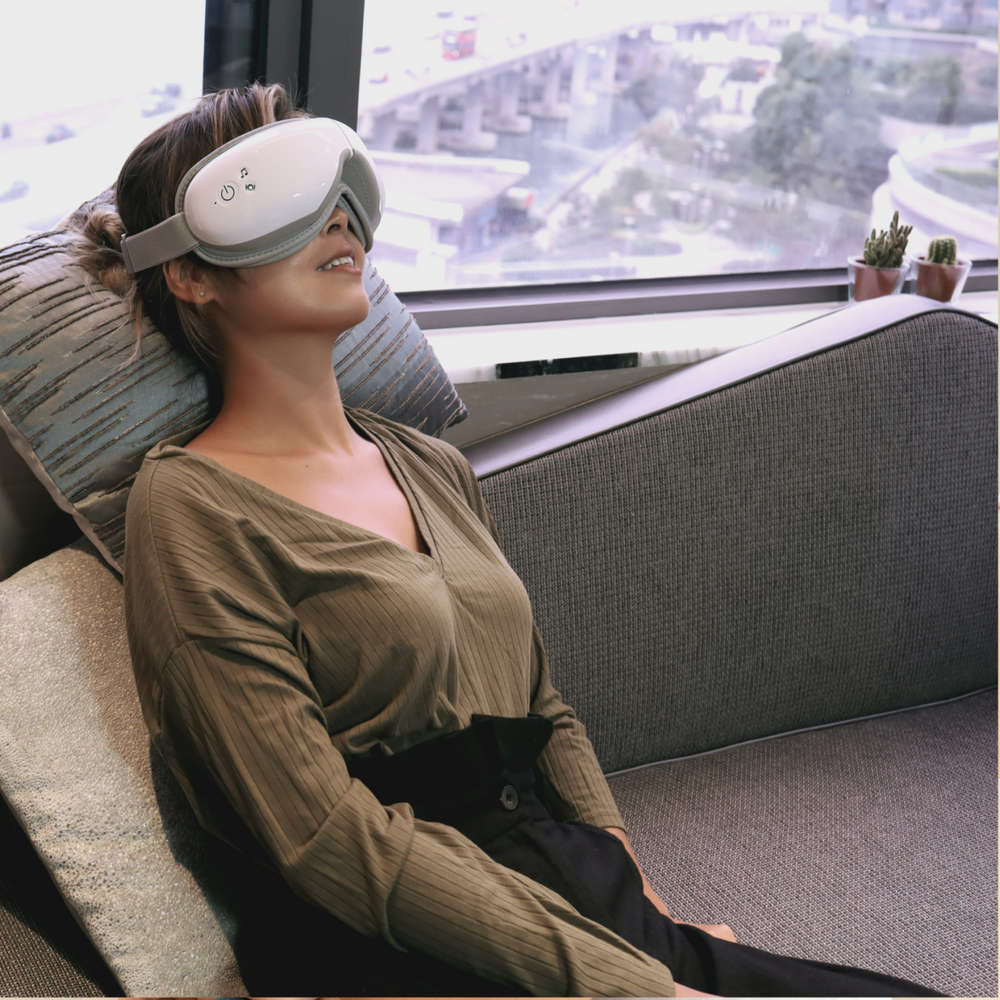 Zrelaksuj się, zmniejsz bóle głowy i zmęczenie oczu oraz śpij lepiej dzięki podgrzewanemu masażowi z funkcją muzyki relaksacyjnej.