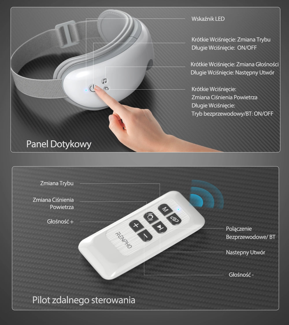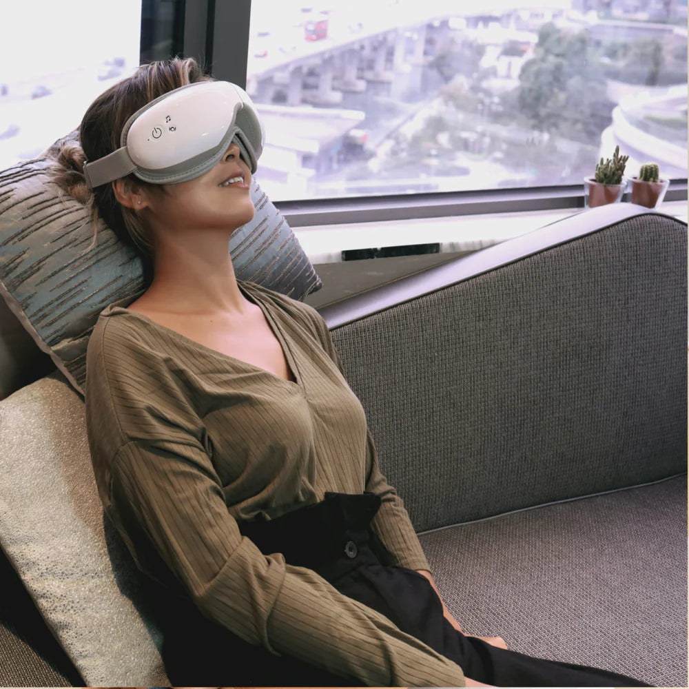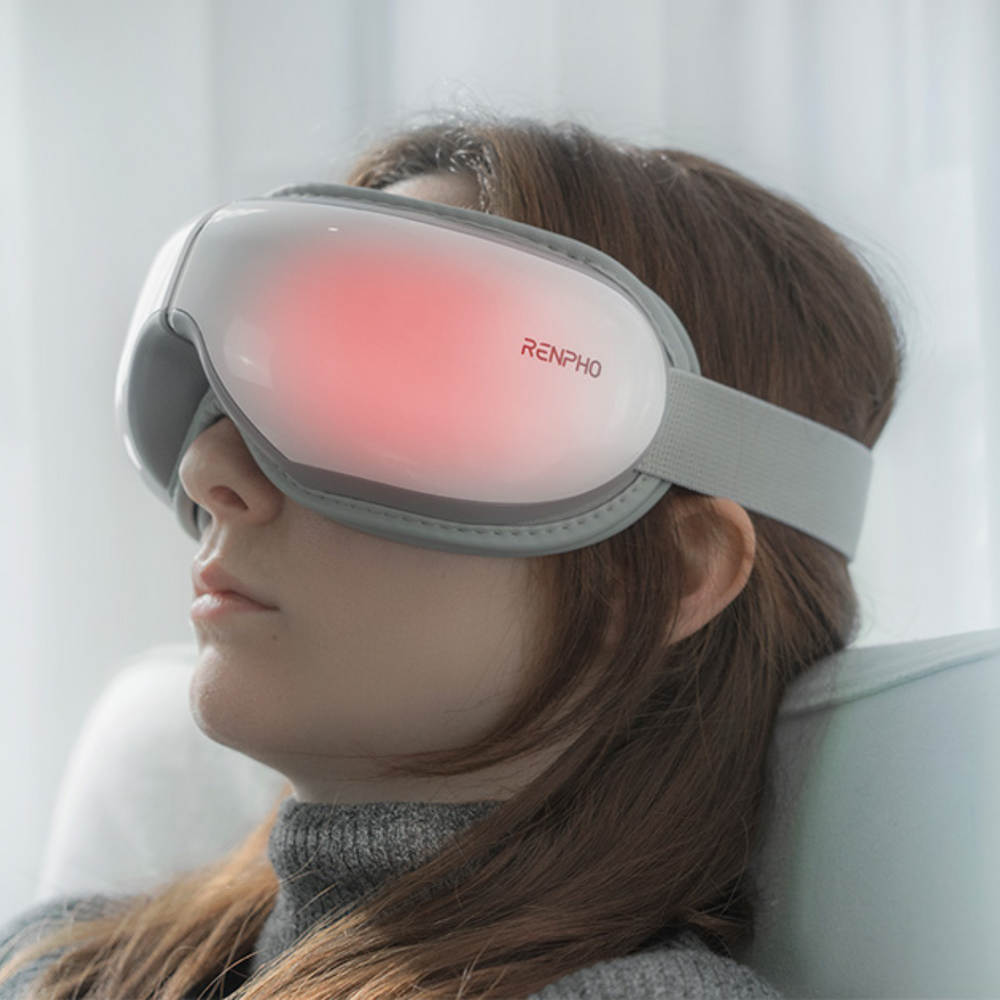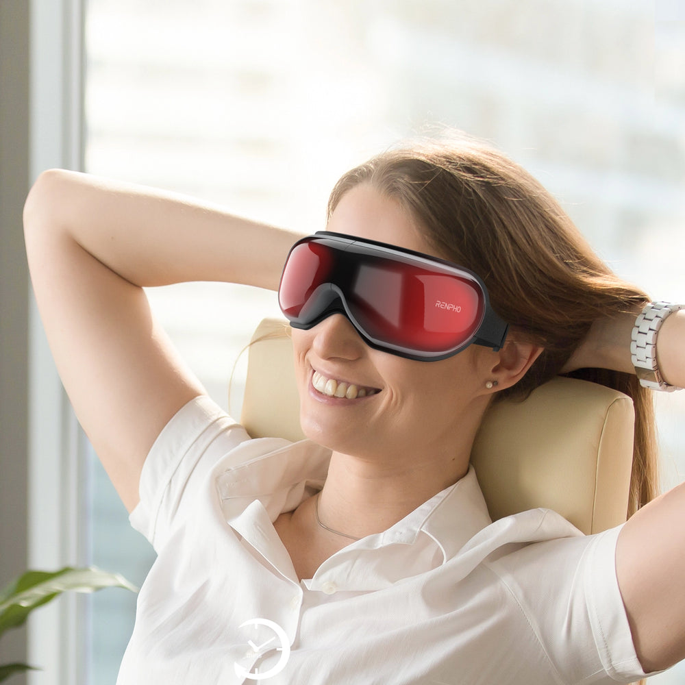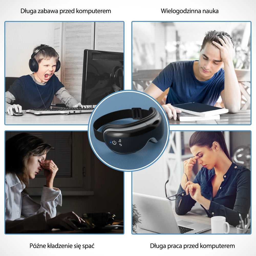 Zrelaksuj się, zmniejsz bóle głowy i zmęczenie oczu oraz śpij lepiej dzięki podgrzewanemu masażowi oczu z funkcją muzyki relaksacyjnej.