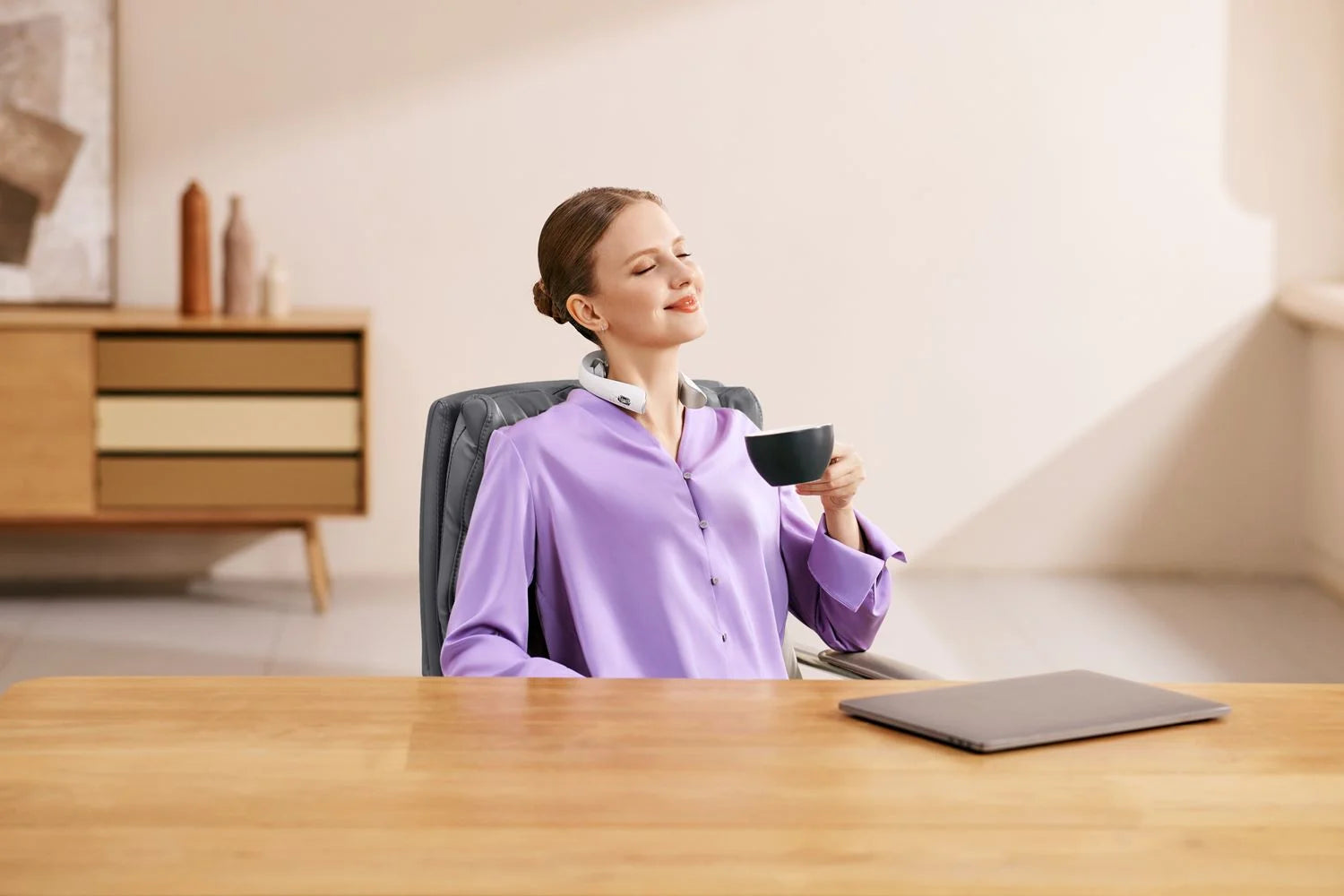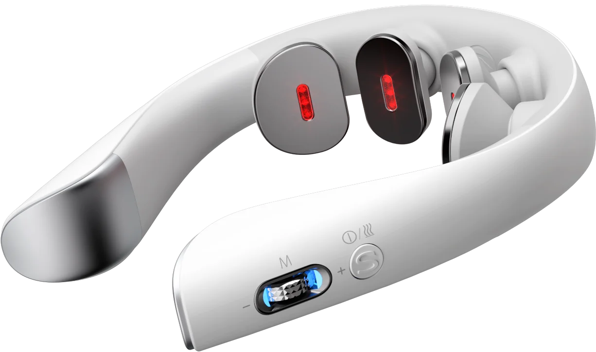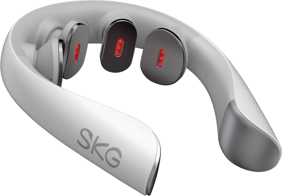 Elektrostymulator SKG K5-3 Pro łagodzi napięcie szyi za pomocą bezpiecznych impulsów elektrycznych. Łączy masaż fizyczny, TENS, EMS, światło czerwone i ciepły kompres, zapewniając relaks i poprawę krążenia.