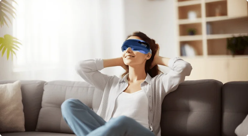 Ulżyj swoim oczom! Zapobiegaj poczuciu zmęczenia i suchości. Lekki i przenośny masażer oczu i skroni E3 Pro z kompresem cieplnym przynosi ulgę dla oczu i zatok, oraz pomaga się odprężyć po stresującym dniu