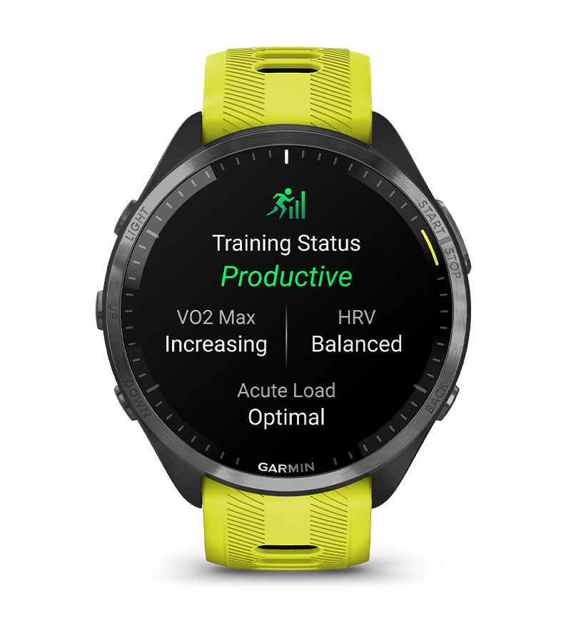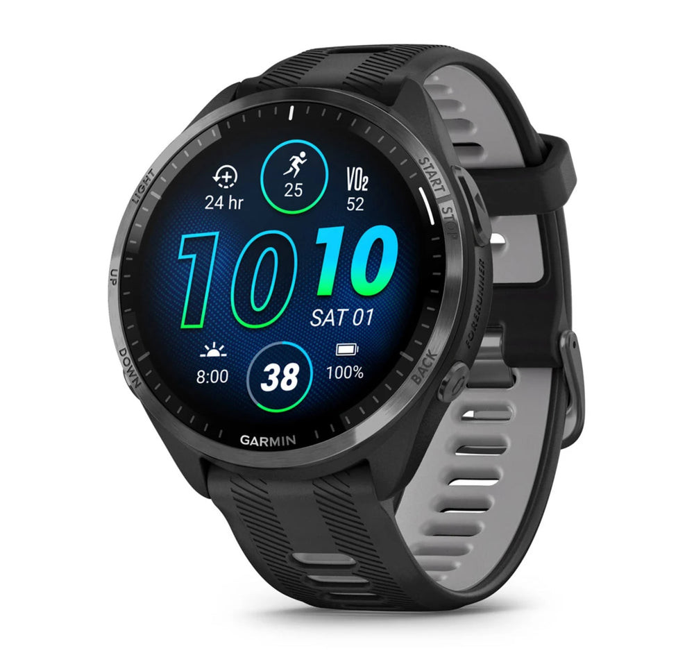 Garmin Forerunner 965 Szara ramka tytanowa z powłoką węglową DLC z czarną kopertą i czarnym/jasnoszarym silikonowym paskiem [010-02809-10]