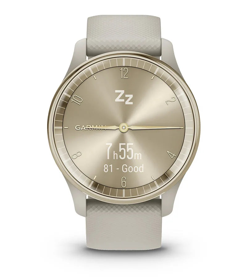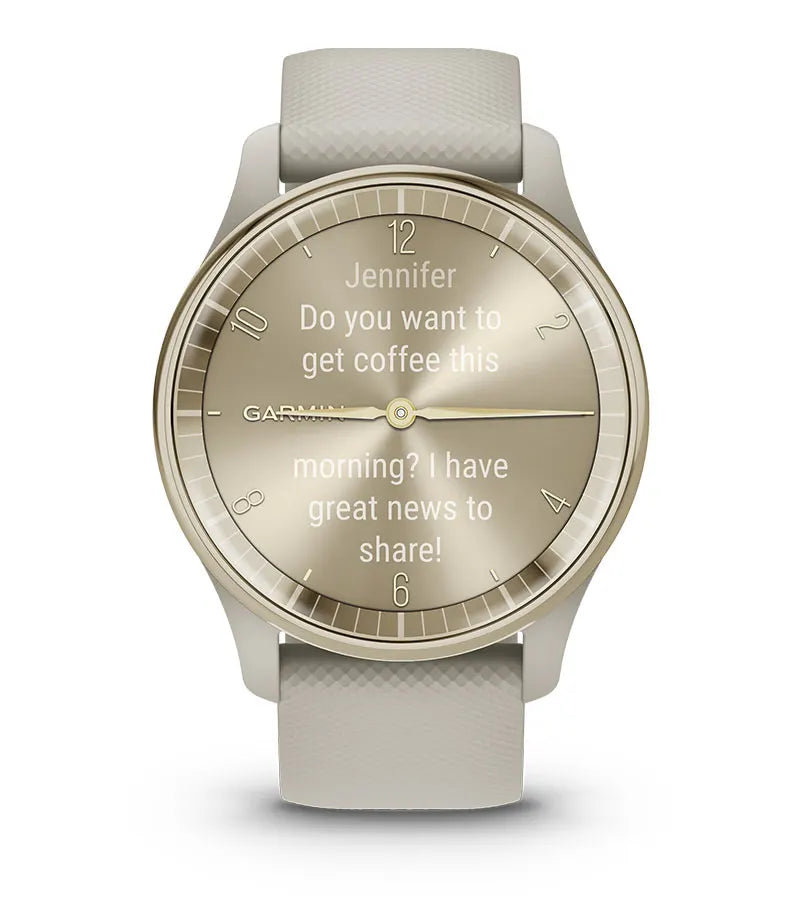 Zegarek hybrydowy vívomove® Trend to połączenie analogowego stylu i niezbędnych funkcji smart, takich jak powiadomienia ze telefonu i płatności zbliżeniowe Garmin Pay™.