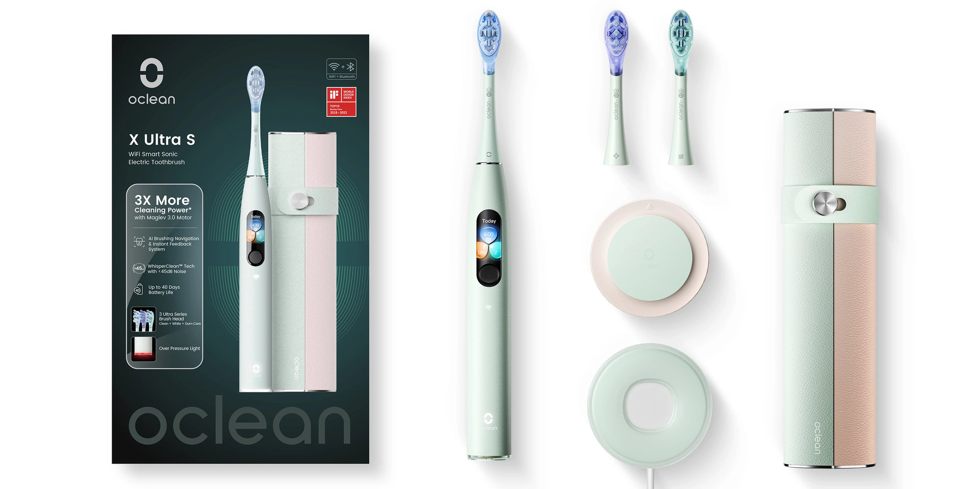 Zestaw Szczoteczka soniczna Oclean X Ultra z etui, 3 końcówkami i uchwytem - miętowa [C01000439]